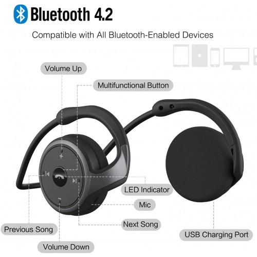 Small Bluetooth Headphones Wrap Around Head - Sports Wireless Headset with Built in Microphone and Crystal-Clear Sound, Foldable and Carried in The Purse, and 12-Hour Battery Life, Blue